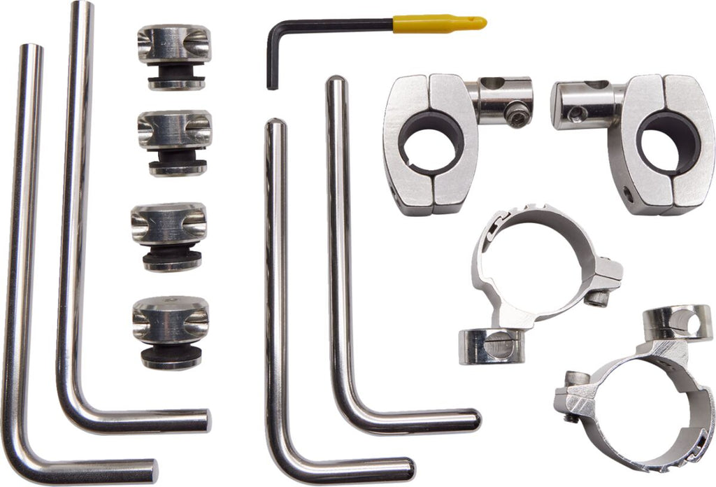 Malibu WindshieldGreat protection in a sleek, stylish package Solid, four-point mounting system Made of Lucite® for excellent optics and durability Included four-point mounting hardware consists of polished billet aluminum handlebar clamps that fit 1" and 7/8" handlebars (with sizing bands), aluminum adjustable fork clamps that fit 35mm to 41mm forks and stainless steel support rods and socket-head screws Fits most round headlights. To remove, simply loosen four socket-head screws, leaving clamps on bars for perfect reattachment of shield.