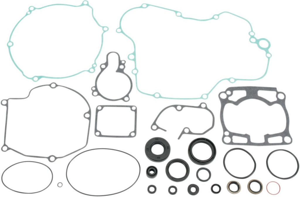 Complete Gasket and Oil Seal KitMoose can now handle all your gasket and seal needs at a fraction of OEM cost Rebuild the engine and transmission with total confidence as each set is designed for durability and accurate fit Oil seals are genuine OEM replacement seals Sets include all gaskets and oil seals necessary to rebuild the entire engine and transmission Valve seals also included Includes formed rubber valve cover gaskets Does not include mechanical water pump seal All gaskets made in the U.S.A. Kawasaki KX 125 M 2003-2005