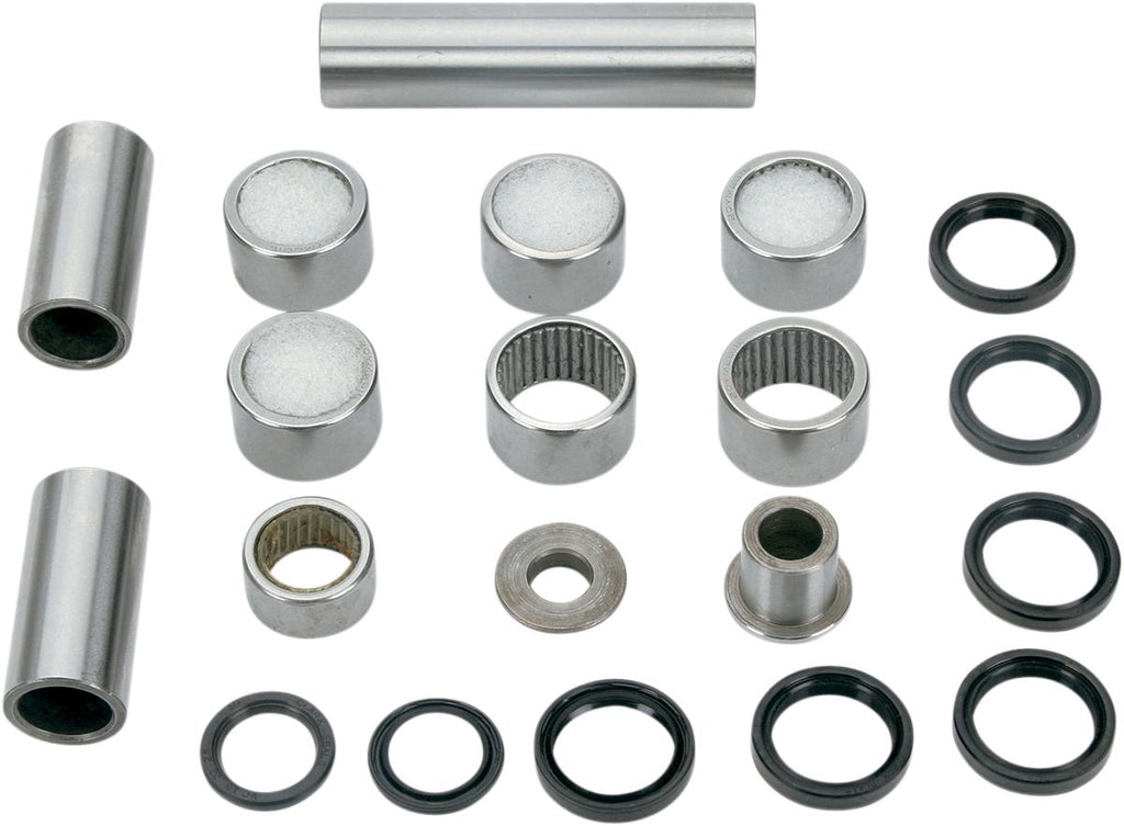 Linkage Bearing KitInclude the lower shock bearing and all other parts necessary to rebuild the suspension linkage 52100 bearing steel and hard-plated spacers resist wear and rust Each kit includes the lower shock bearing, all the shafts, seals and spacers in the link, link arm and lower shock mount Kawasaki KX 125 M 2004-2005 Kawasaki KX 250 2004 Kawasaki KX 250 2005-2007 Kawasaki KX 250 2004 Kawasaki KX 250 2005-2007 Kawasaki KX 250 F 2004-2005 Kawasaki KX 250 F 2006-2007 Suzuki RM-Z 250 2004-2005 Suzuki RM-Z 250 2006 Suzuki RM-Z 250 2006