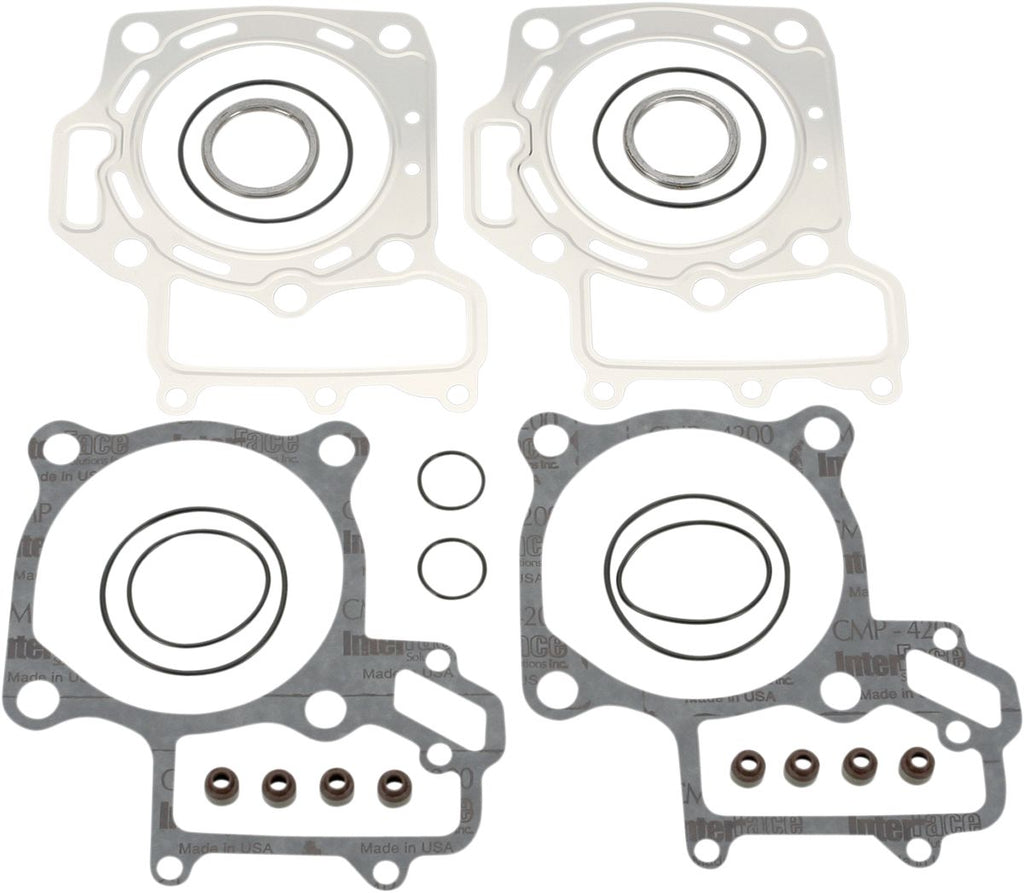 Top End Gasket KitMoose can now handle all your gasket and seal needs at a fraction of OEM cost High-tech materials provide unmatched reliability and performance Rebuild the engine and transmission with total confidence as each set is designed for durability and accurate fit Oil seals are genuine OEM replacement seals Performance sets designed for a piston replacement Includes every gasket, O-ring and seal required to rebuild a top end; valve seals, head, base, exhaust, tensioner, and other misc. gaskets and O-rings Does not include formed rubber valve cover gasket Formed valve cover gaskets are included in complete kit with oil seals High-compression kits use .012" thick base gaskets to raise compression Cost-effective way to raise compression without expensive high-compression pistons or cylinder head work All gaskets made in the U.S.A. Kawasaki KFX 700 2X4 2007-2009 Kawasaki KFX 700 2X4 2004-2006 Kawasaki KVF 700 4X4 2006 Suzuki LT-V 700 F 4X4 2004-2006