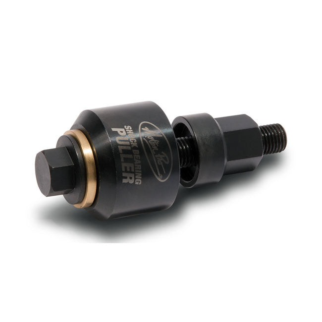 Safely removes and installs the upper spherical bearing on rear shocks; Durable hardened tool steel construction; Corrosion resistant black oxide coating; Reversible puller cup with cutaway fits a wide variety of shock reservoir and compression adjuster configurations; brass thrust washer
