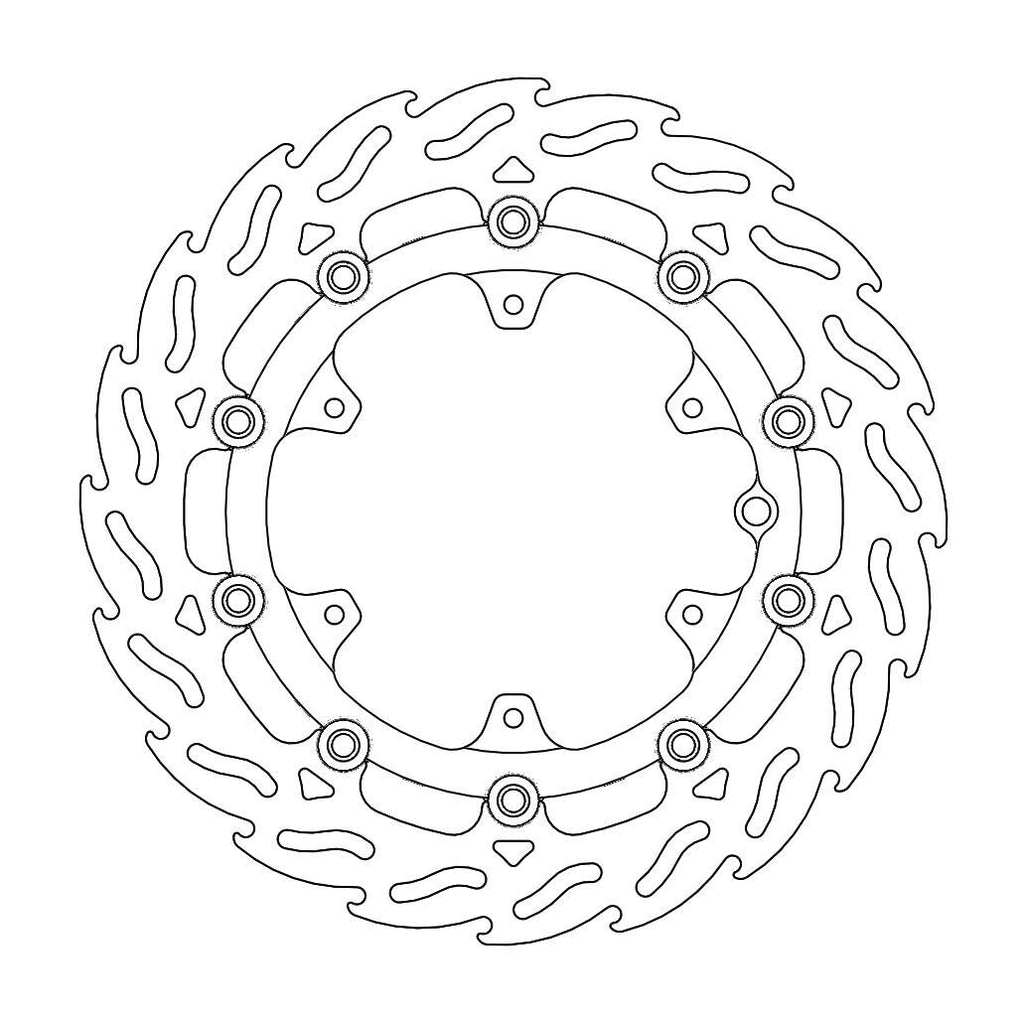 Flame Series RotorBolt-on performance upgrade Flame design ensures optimal heat dissipation and a perfect cleaning of the brake pad surface Durable, premium quality stainless steel outer ring, mounted with lightweight stainless floaters Precision double-ground for excellent rider feedback, eliminating any pulsation at the lever Equal brake pad contact throughout entire rotation of disc ensures linear braking action CNC-machined 6082 billet aluminum, black anodized carrier is lightweight and strong Can be used with any type of brake pad Also available in a 5,5 mm professional racing version AJP PR7 610 2018-2021 Gas Gas ES 700 ABS 2022 Husqvarna 701 Enduro 2016-2017 Husqvarna 701 Enduro 2021-2023 Husqvarna 701 Enduro 2018-2020 Husqvarna 701 Enduro LR 2020 KTM Adventure 990 2006-2010 KTM Adventure 990 ABS 2010-2013 KTM Adventure 990 ABS 2006-2009 KTM Adventure 990 ABS 2011 KTM Adventure 990 R 2009-2013 KTM Adventure 990 S 2006-2008 KTM Enduro 690 2008-2011 KTM Enduro 690 R 2009-2013 KTM Enduro 690 R ABS 2014-2020 KTM Superenduro 950 R 2007-2008 KTM Superenduro 950 R 2009
