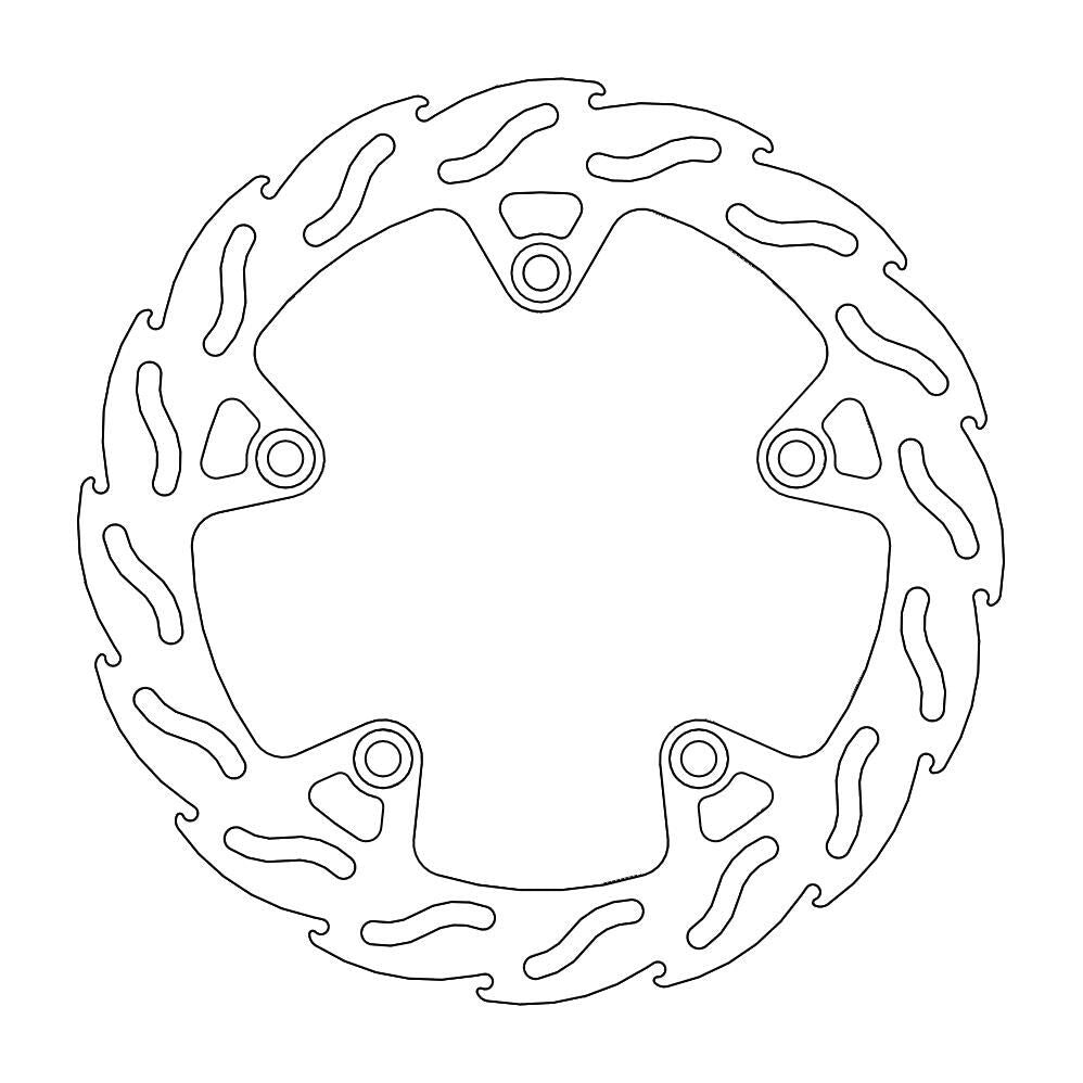 • Flame shaped venting slots and outer perimeter ensure an equal amount of contact surface between the brake pad and disc throughout the whole rotation of the disc.