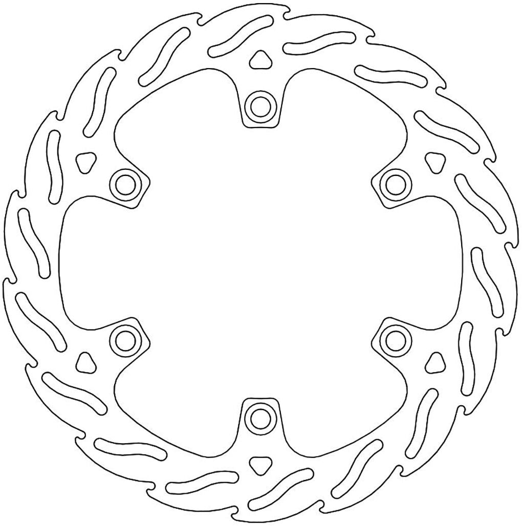 • Flame shaped venting slots and outer perimeter ensure an equal amount of contact surface between the brake pad and disc throughout the whole rotation of the disc.