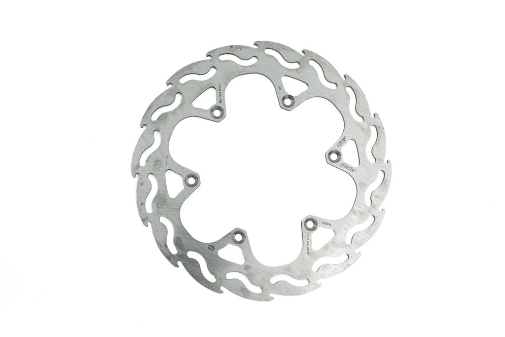 • Flame shaped venting slots and outer perimeter ensure an equal amount of contact surface between the brake pad and disc throughout the whole rotation of the disc.
