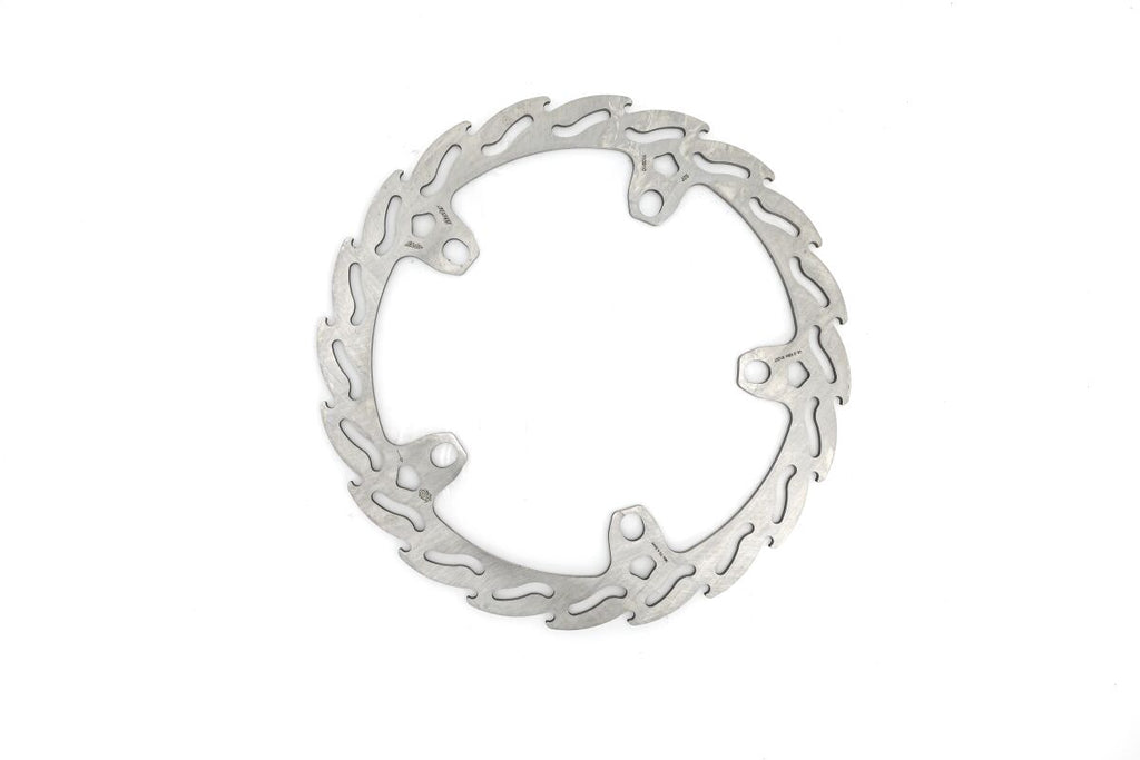 • Flame shaped venting slots and outer perimeter ensure an equal amount of contact surface between the brake pad and disc throughout the whole rotation of the disc.