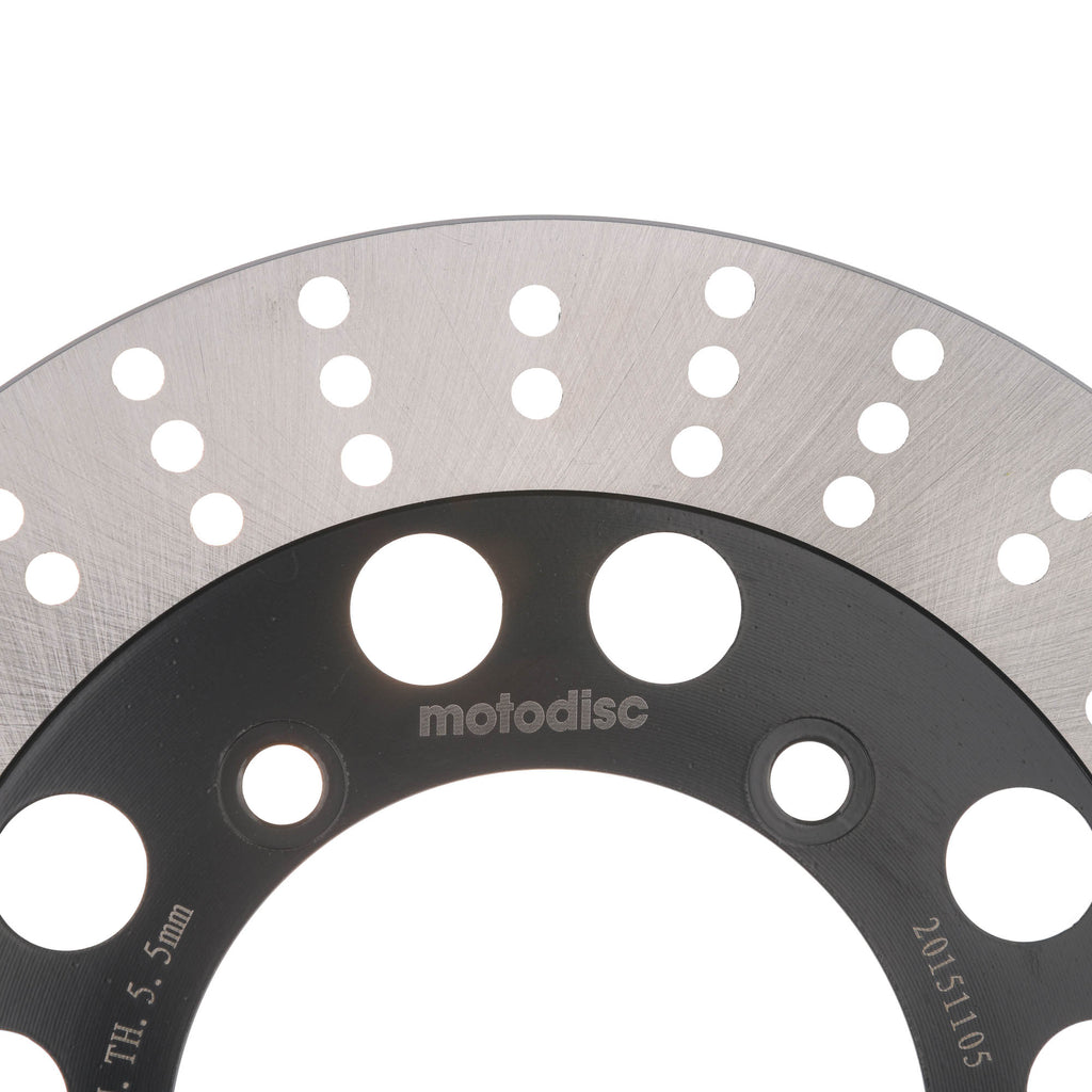 Constructed using one complete segment of Japanese SUS 420 stainless steel, then heat treated to HRC 36+-2 standards. Lightening and drill hole patterns are applied as per OEM specifications to improve braking performance and reduce the discs temperature during use.