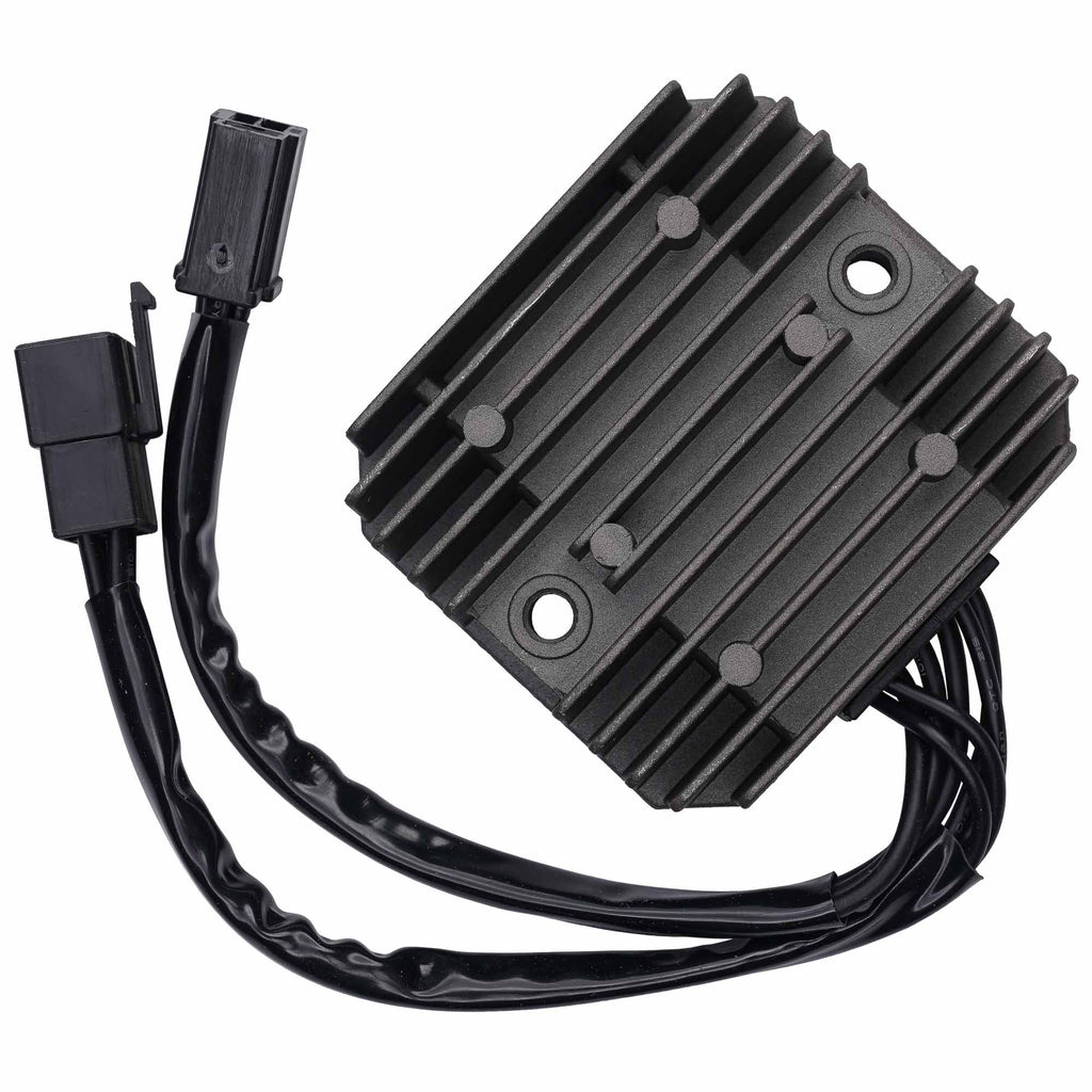 A motorcycle regulator rectifier is part of the battery charging system, and as the name implies regulates the voltage across a motorcycle to save working ranges. Typically a rectifier is fed AC power generated from the stator coils of the generator (alternator) and converts it to DC power whilst, at the same time, limiting the voltage to a maximum of about 14.5 volts.