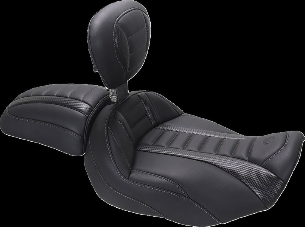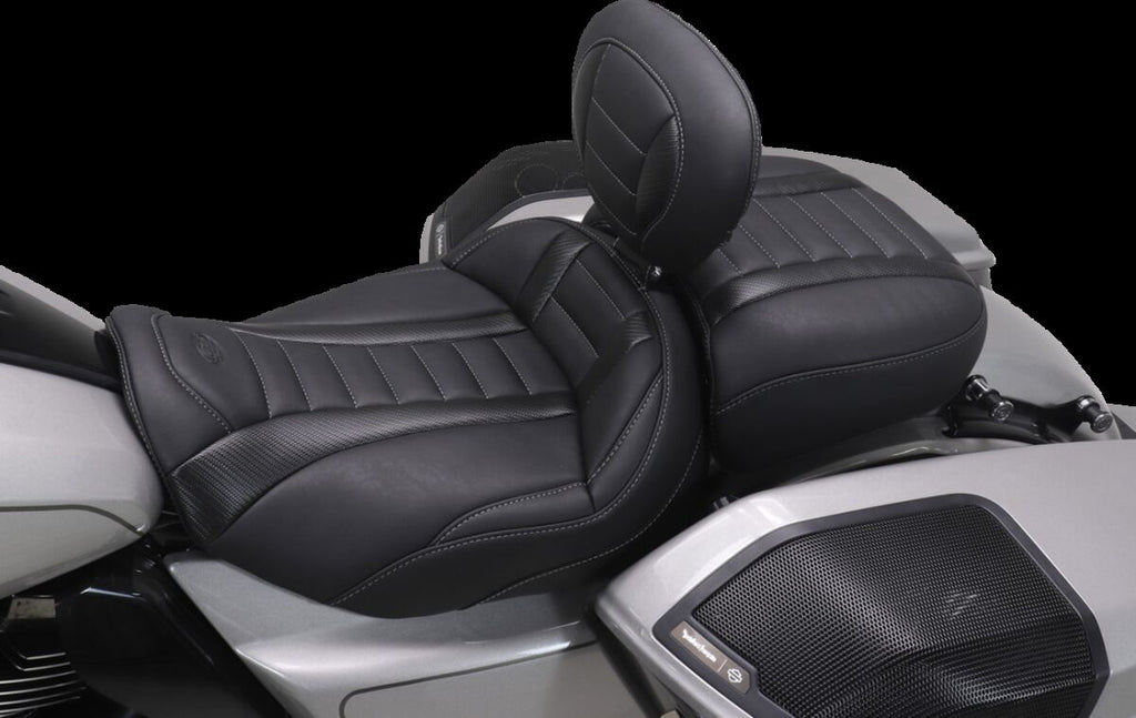 Deluxe Touring Solo SeatFeatures Deluxe pattern with eye-catching carbon fiber inlay Wide seat sits the driver 1.75" farther back than the stock seat Driver backrest is fully adjustable and removable Bucket style saddle positions rider in the seat for a more controlled and comfortable ride Mustang's proprietary controlled-density foam formula requires no break-in and retains shape and support after years of use Marine-grade fiberglass baseplate for long-lasting support and durability, with polyurethane bumpers to absorb vibration High-quality expanded vinyl cover offers the appearance of leather and durability to withstand the elements Made in the USA Harley Davidson FLHX 1923 ABS 2024-2025 Harley Davidson FLHXS 1868 ABS 2023 Harley Davidson FLHXSE 1977 ABS 2023-2024 Harley Davidson FLTRK 1868 ABS 2024 Harley Davidson FLTRX 1750 ABS 2023 Harley Davidson FLTRX 1923 ABS 2024-2025 Harley Davidson FLTRXS 1868 ABS 2023 Harley Davidson FLTRXSE 1977 ABS 2023-2024 Harley Davidson FLTRXST 1923 ABS 2023 Harley Davidson FLTRXSTSE 1977 ABS 2024-2025