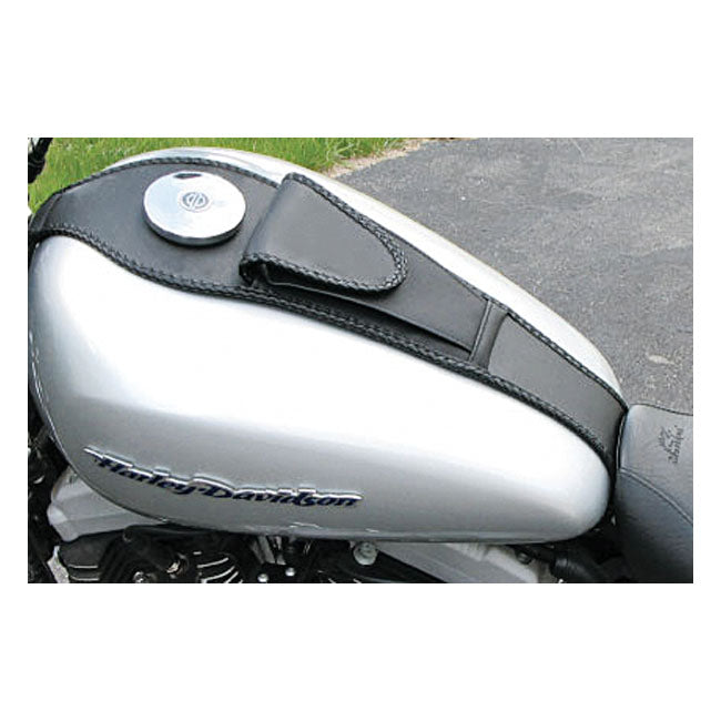 Black. This tank bib is contoured to hug the fuel tank without gaps around the edges. Comes with braided edges and is soft felt-backed to help prevent paint damage. The small pouch will expand when opened, has a soft fabric lining and is perfect for small items that should be readily available. The secure hook & loop system allows easy access and a positive closure.