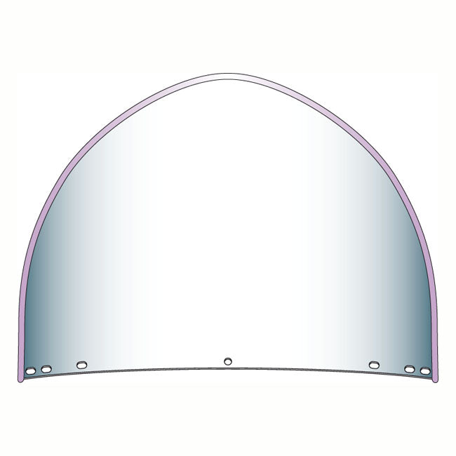 Clear. Replacement top windshield window for all National Cycle 5-bolt pattern 3-piece windshields. This is the 1949-1959 early 'peaked' (pointed) style top window for a classic look. Will replace all late model 'round top' top windows. This windshield is manufactured from FRM hard coated clear Lexan® polycarbonate which is the highest quality motorcycle windscreen material available. Offers superior optics, scratch-resistance, durability and should not be mistaken with import products. Overall screen height: 15.38" (39.0cm). Top of center mount hole to top of screen: 14.88" (37.7cm). Width: 22.25" (56.6cm). Note: Will not fit OEM 7-bolt pattern windshields. See 915222 for OEM 7-bolt pattern windshields in 'peaked 1949 style'.