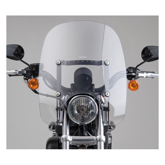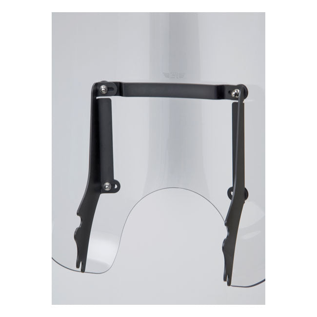 A very effective full size, 18" wide and great value for money. A Quick Release windshield with a stealth black powdercoated stainless steel frame. Made from 4mm thick clear Quantum® hard coated polycarbonate material. To date this remains the best windshield material in the world and very safe, it will literally resist a baseball bat whacked at full force... even a shotgun blast with birdshot from a few meters away. Extremely high impact protection for your safety! Note: Quick Set 4™ mount kits must be purchased separately Headlight cutout to top of screen: 18.50"/ 47 cm Widt across back at widest point: 18"/ 45.7 cm