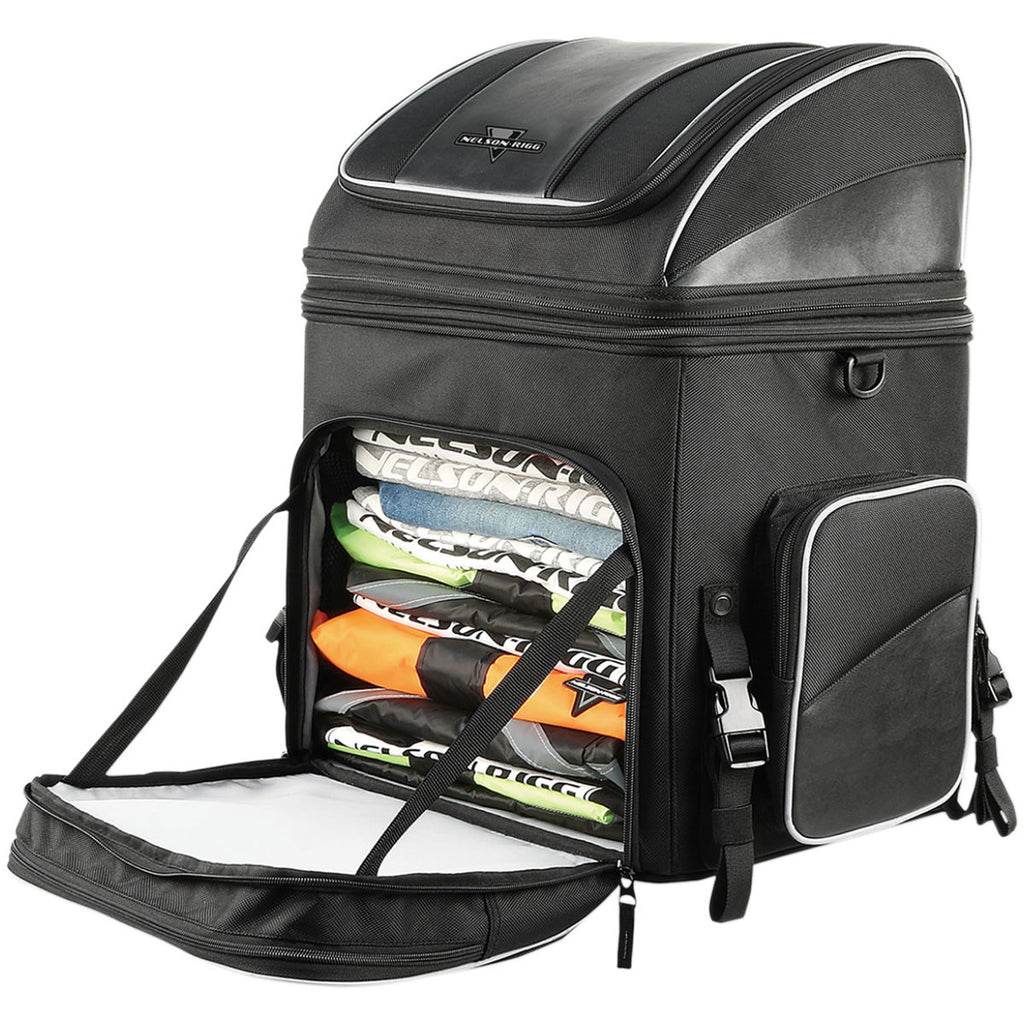 - Mounts to luggage rack, sissy bar or passenger seat with quick release and self-fastening straps