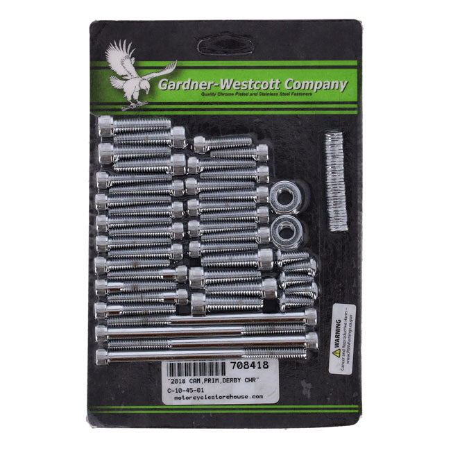 Unpolished chrome plated Allen head bolt kit. Complete mounting kit consisting of Allen bolts for the cam; primary; derby; inspection and transmission end cover. These kits come complete with special washers where applicable.