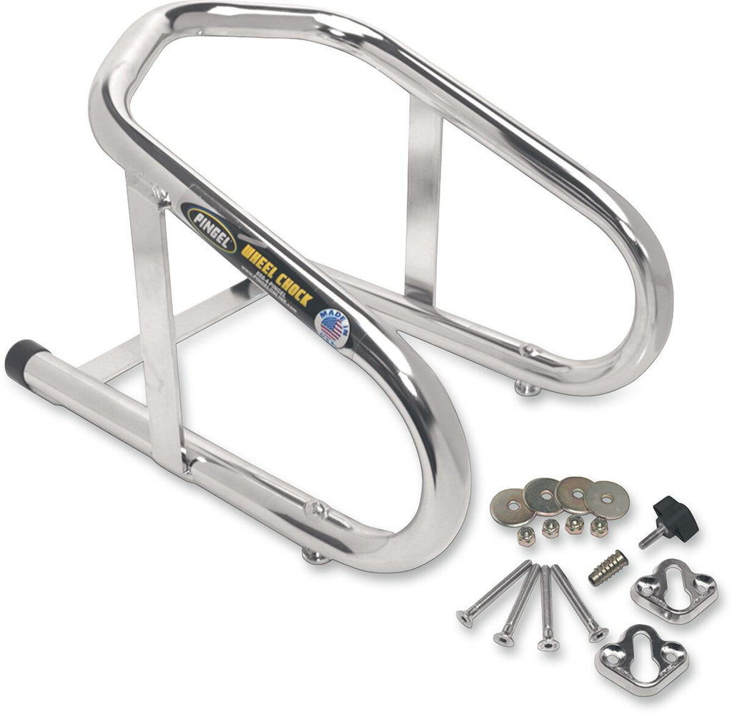 Removable Wheel ChockMounting brackets remain fastened while the chocks are easily removed by unscrewing the T-bolt hold-down screw Stabilize the front wheel of a motorcycle for trailer transportation Wheel chocks can easily be removed when not in use Made in the USA Additional mounting kits sold separately, enabling you to move the chock from one surface to another without removing the mounting brackets. Designed with a 3-bend radius that will keep any width tire centered in the chocks; clearance for motorcycles with large rotors.