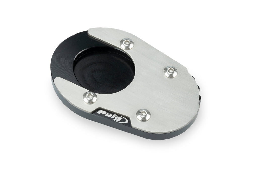 Increase stability and support for your parked motorcycle with the Puig kickstand extension. Designed to prevent potential falls, this extension offers a 100% wider base than the original, allowing for safe parking on soft or uneven surfaces. This high-quality extension is made with a mix of stainless steel and an anodized aluminium block, providing both durability and lightweight properties (110-160g based on model).