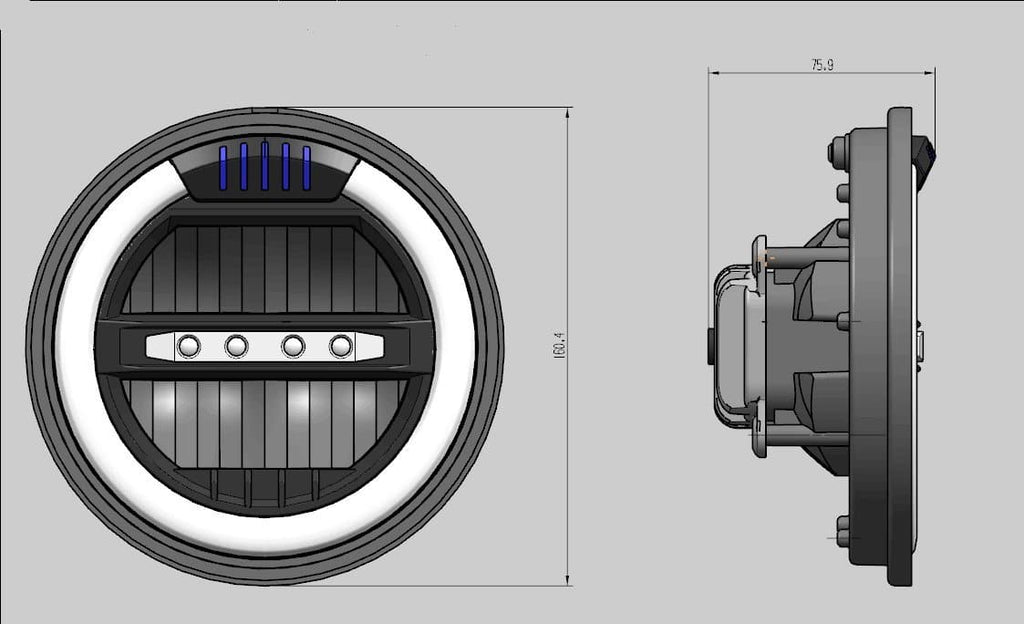 A round headlight with LED's for superior brightness and efficiency. A great addition to a naked bike with a traditional round headlight.