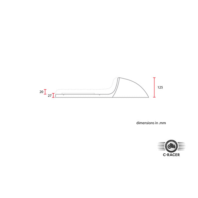 Dark brown synthetic leather upholstery. Consists of 2 parts, a seat cowl and the upholstery base with 3 mounting points (M6-Steel plus nuts) that allow easy installation. If you want to build a classic Café Racer this is the shape you need. It probably is one of the most popular versions for a wide variety of applications. Made from unpainted black ABS plastic and comes with 20mm thick seat foam that is covered with a water repellent membrane below the synthetic leather upholstery. Note: Installation modifications may be required. Note: Seat comes unpainted.