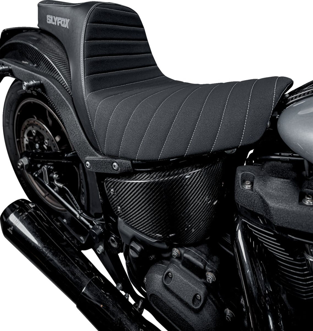 High Noon SeatSeating area is contoured for maximum comfort Molded flexible urethane foam 3/16" ABS thermoformed seat base offers a perfect fit, with fully carpeted bottom and rubber bumpers to protect paint Made in the USA 8-1/2" (21.59 cm) lumbar support.Harley Davidson FLSB 1750 ABS 2018-2021 Harley Davidson FXLRS 1868 ABS 2020-2021 Harley Davidson FXLRS 1923 ABS 2022-2024 Harley Davidson FXLRST 1923 ABS 2022-2024