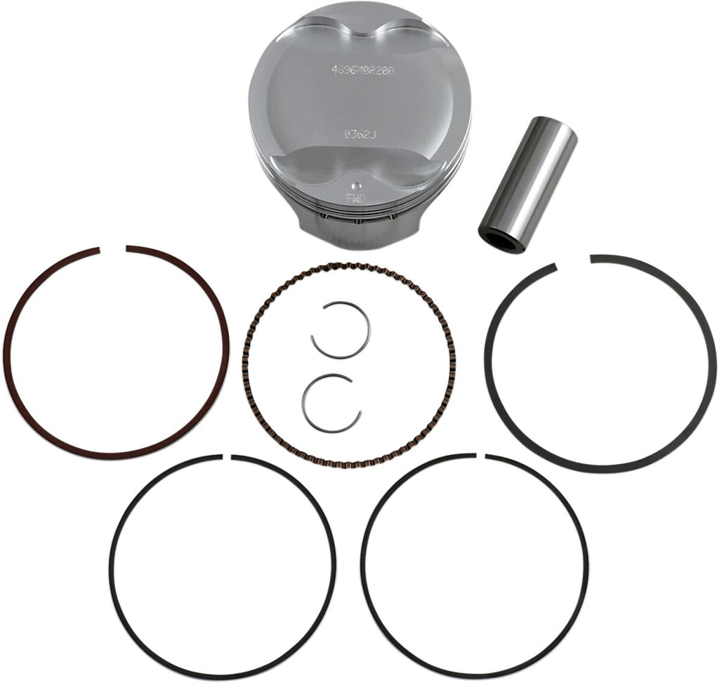 Piston Kit Forged Series for 4-StrokeForged 4-stroke piston is designed for each specific engine application and built to the tightest tolerances for the ultimate combination of performance and strength Dedicated forgings allow for optimized strength-to-weight ratio Ideal for multiple purpose riding Kit includes piston, wrist pin, rings and circlips Cylinder deglazing required.