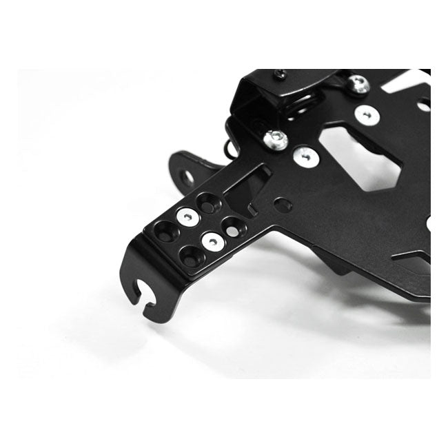 License Plate Bracket Pro Black For Triumph: 04-15 Thruxton / 01-06 Bonneville 800 / 05-15 Bonneville 865 / 06-15 Scrambler 865