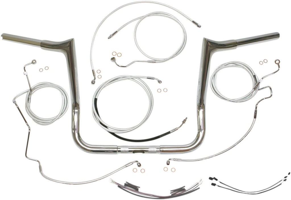 1-1/4" Viking Handlebar Installation KitThe only complete handlebar kits with matching braided cables and brake lines that include Magnum Viking 1-1/4" Handlebars Patented Viking handlebar internal design guarantees easy installation of complete wiring harnesses without taking away from the clean look of the peak Novel design creates enough room to allow the complete wiring harness with factory vinyl covering and the terminal connections, along with their respective shrink sleeve, to easily pass through without chaffing Unique flaring process creates a burr free internal radius with a generous pocket of additional clearance within the troublesome peak of the handlebar To make wiring installations even easier, Magnum preloads the bars with E-Z pull-thru plastic woven sleeving; insert the wiring harness into the sleeving and pull through, it’s that simple Aggressive looking Viking handlebars are manufactured with the highest-quality construction, work with standard controls, including hydraulic clutch Each 1-1/4" diameter handlebar is CNC mandrel bent for an accurate fit, incorporates wrist angles for engineered riding comfort, has 1" diameter center sections, 3-1/2" on-center knurling and features machined control mounts (not swaged) and burr-free internal wiring holes and electronic control slots Kits include: Magnum Viking Handlebars, throttle and idle cables or Throttle-By-Wire extensions, clutch cable or hydraulic clutch line, brake lines, copper crush washers, hardware and any necessary switch or turn signal extensions All cables are a low-effort, high-efficiency design that meets or exceeds all OE specifications for fitment, construction and endurance Assembled in the U.S.A. Cable and line lengths are based on 2" risers, except for touring models. Viking Bagger and Ape Hanger handlebars have a 1" diameter center section and fit 1" risers; models originally equipped with handlebars larger than 1" will require changing the risers to a 1" ID version. Harley Davidson FLHTCU 1690 ABS 2014-2015 Harley Davidson FLHTCUL 1690 ABS 2015 Harley Davidson FLHTCUTG 1690 2014-2015 Harley Davidson FLHTK 1690 ABS 2014-2015 Harley Davidson FLHTKL 1690 ABS 2015 Harley Davidson FLHTKSE 1800 ABS 2014-2015 Harley Davidson FLHX 1690 2014-2015 Harley Davidson FLHX 1690 ABS 2014-2015 Harley Davidson FLHXS 1690 ABS 2014-2015 Harley Davidson FLHXSE 1800 ABS 2015