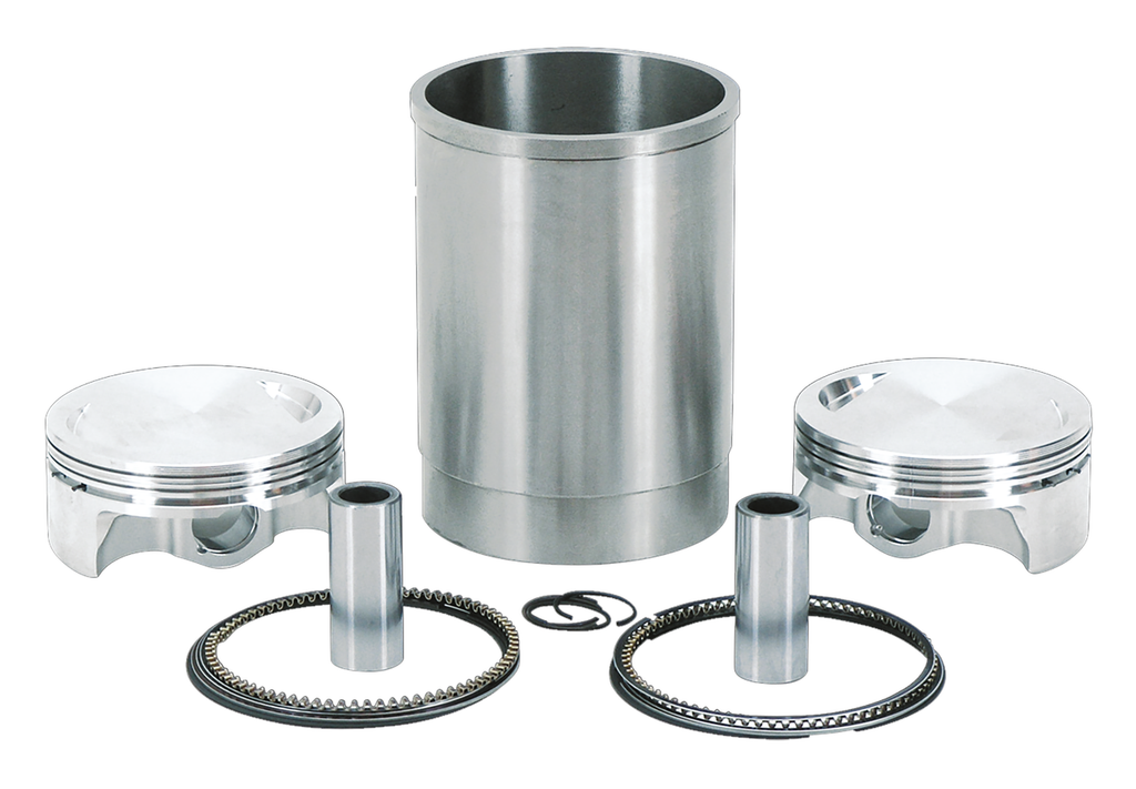 Our Big Bore "Sleeper Kit" turns your Twin Cam 88 into a Mean Machine The use of these 4" bore "Sleeper" pistons in conjunction with a 4 3/8" Stroker crank you enlarge the capacity of the standard Twin Cam engine from 88 to 110CI. Stock cylinders must be re-sleeved, and crankcases have to be bored to accept the Big Bore sleeves. No cylinder head modification is required. Kit includes a pair of Wiseco forged pistons, piston rings, retaining clips, piston pins, and gasket kit. Big Bore cylinder sleeves and stroker crank must be ordered separately.