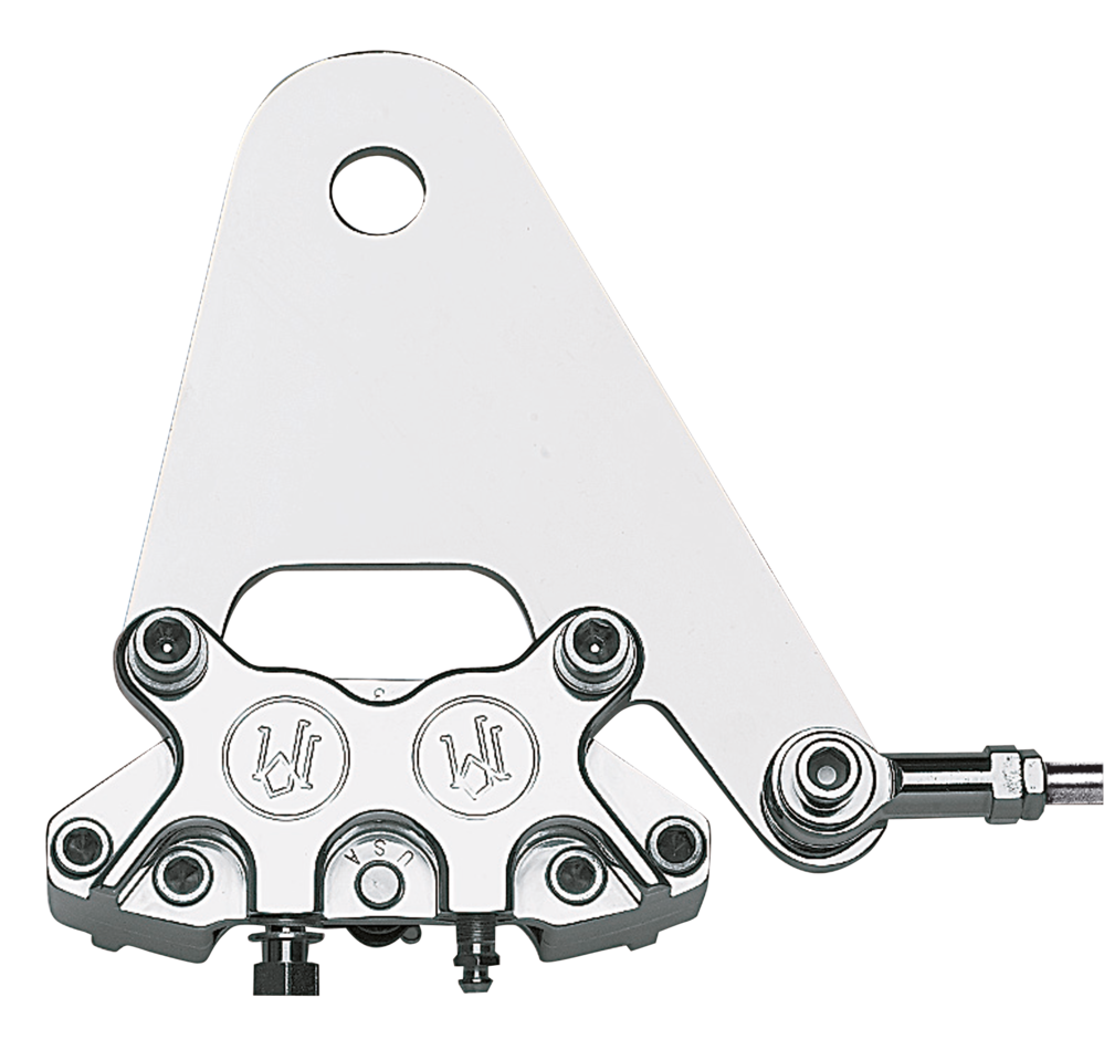 The four piston classic design calipers is the proven choice for custom bike builders for many years. It provides four piston braking power you can depend on. This is the brake for your custom rigid motorcycle. Easy to install and easy to service. Fits all rigid models rear disc as well as many custom Softails and other custom application. Includes 125x4R type caliper and bracket. Available for use with 10" and 11.5" stock or aftermarket discs.