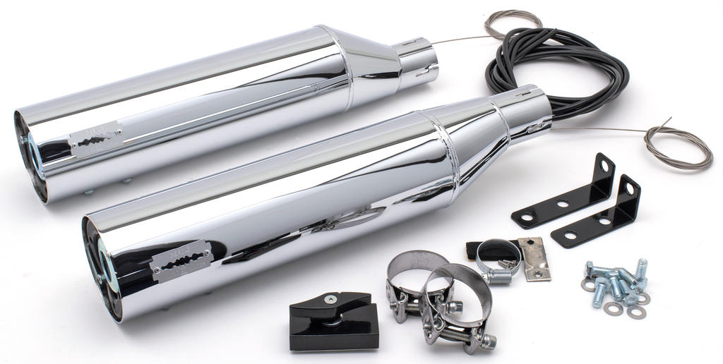 E-approved slip-ons with an adjustable exhaust valve that allows you to tune the sound of your bike the way you like it, but still get back to what is legal. These exhausts come complete with a manual operated adjusting lever that can be placed on either the handlebar or below the tank. Electric operated adjusting motors are available as an option. End caps must be ordered separately.