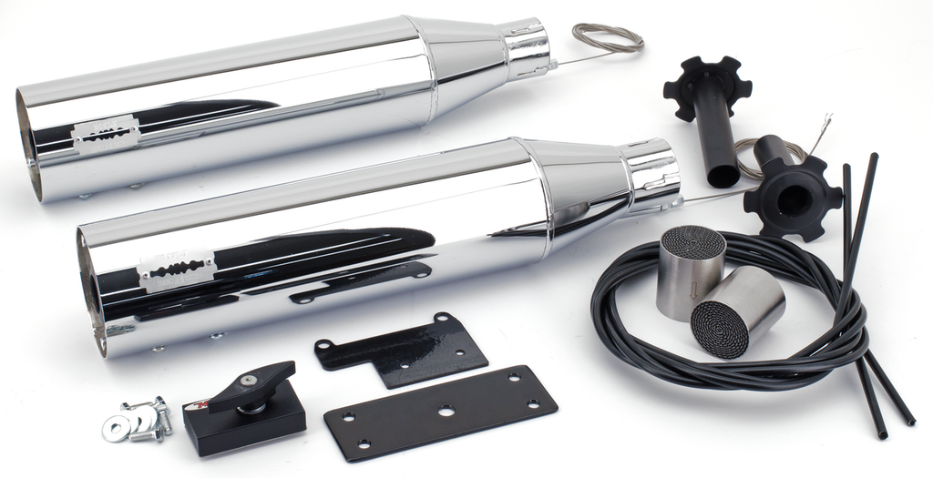 E-approved slip-ons with an adjustable exhaust valve that allows you to tune the sound of your bike the way you like it, but still get back to what is legal. These exhausts come complete with a manual operated adjusting lever that can be placed on either the handlebar or below the tank. Electric operated adjusting motors are available as an option. End caps must be ordered separately.