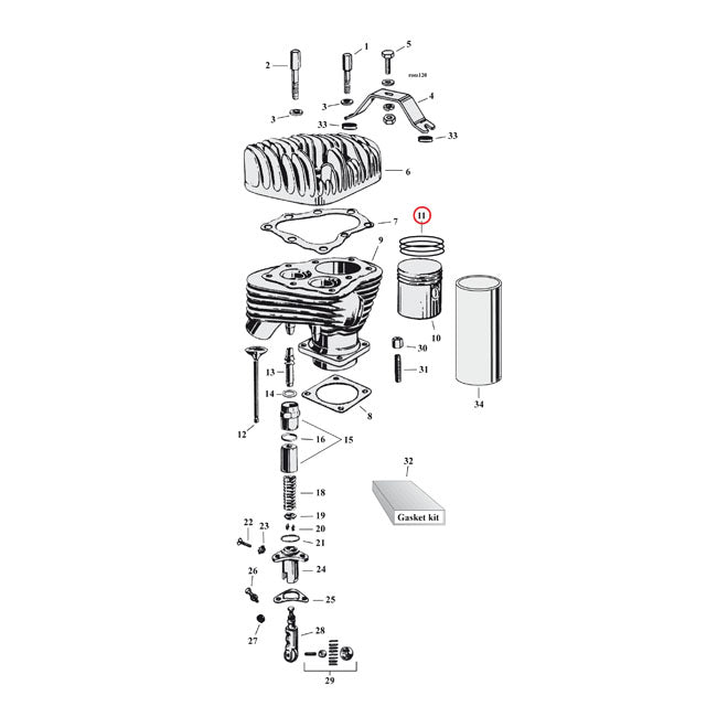 Used with late style 1950-1973 type pistons with 1/16" gray iron parkerized compression rings and the 3-piece flex-vent style chrome oil rings. Also fits 52-56 K, KH, KHK 55" (900cc) Flathead models. Std Bore: 2.745" (69.723mm). 1st ring: 1.6mm. 2nd ring: 1.6mm. oil ring: 4.75mm. Note: OEM 1929-1949 pistons are equipped with 3/32" (2.3mm) 1st. & 2nd rings and 1/8" (3.2mm) oil ring, for these Hastings rings see 1950-1973 Flathead model years. These rings will not fit the 1929-1949 early type pistons. Tech tip: Piston grooves vs piston rings. It's not difficult to determine if a Hastings piston ring set will fit a certain piston. You should measure the height of the piston groove in the piston itself. The 2 top grooves will be for compression rings, the lower groove will be for the oil ring. In most cases Hastings oil rings are of the low tension 3-piece flex vent type. Ring heights are listed for reference. Tech tip: Piston oversizes. For each oversize cylinder diameter will increase with .010" (0.254mm). The standard bore of the cylinder is listed for reference. (Tech tip information provided by Hastings Manufacturing Company, Inc.) Fitment: 50-73 45" (750cc) Flathead; all 52-56 K 45" (750cc) and KH, KHK 55" (900cc) Flathead models (NU)