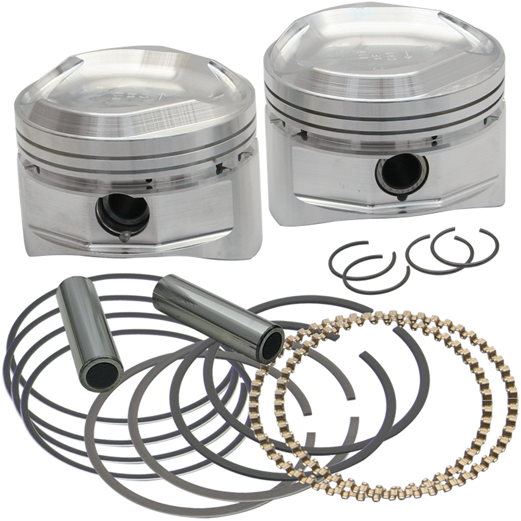 Harley performance people that know will confirm that "You can't beat cubic inches" S&S understand this and came up with the solution. First there is this Power Package. It will convert your Evolution Big Twin motor to 88 cubic inch (1,475 CC). This kit comes with .175" shorter than stock S&S aluminum cylinders, flat top forged pistons with 1.200" deck height, rings, wrist pins, circlips and gaskets. The cylinders are precision bored and honed. These kits are easy to install and ready to run, as no cylinder head modifications are required, only the crankcases must be bored to accept the kit. As these cylinders are shorter than stock these kits must be installed with adjustable pushrods and a shorter than stock manifold. Special pistons for use with S&S Super Stock heads are available separately.