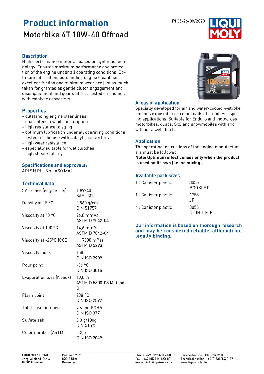 Specially developed for air and water-cooled 4-stroke engines exposed to extreme loads off-road. For sporting applications. Suitable for Enduro and motocross motorbikes, quads, SxS and snowmobiles with and without a wet clutch.