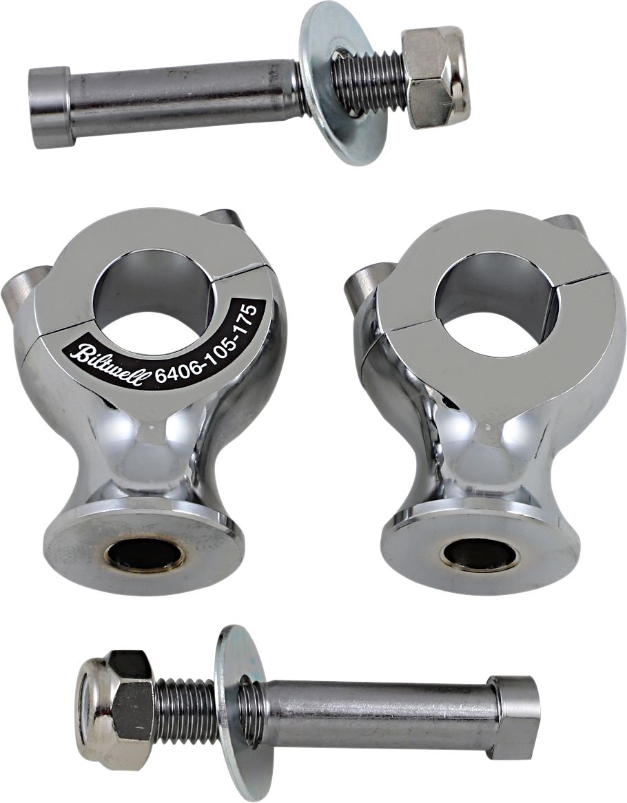 7/8" Slimline RisersCNC-machined billet 6061-T6 aluminum construction 3/4" rise from mounting base to center line of handlebar clamp M12 stainless-steel D-bolts with flat washers and Nyloc mounting nuts Bar clamps feature M8 Allen cap hardware With their timeless styling and proven CNC'ed billet alloy construction, 7/8-inch Slimline risers look and work great on any stock or custom motorcycle you can imagine Slimline's short 1-3/4" inch rise gives a compact presence on fork trees NOTE: If your motorcycle has removable bar clamps and the top tree accepts 1/2-inch or 12 mm O.D. mounting hardware, chances this riser will fit