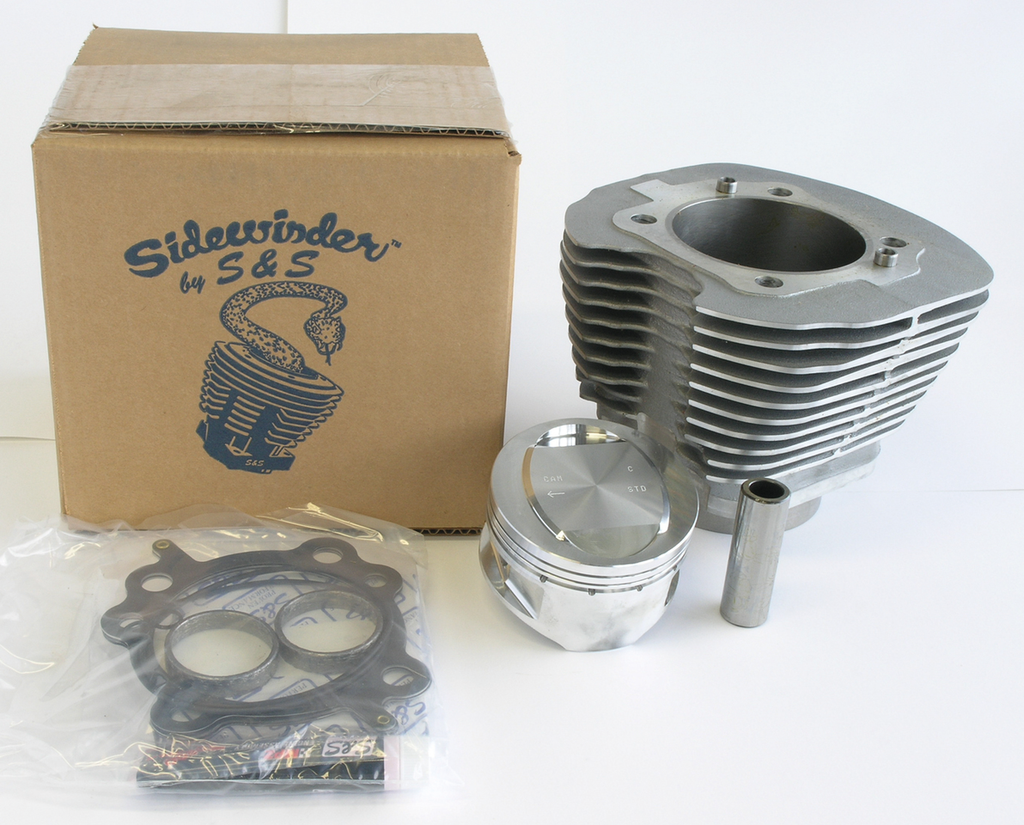 These Big Bore cylinder kits are a simple solution to increase the capacity of your Twin Cam without changing the stroke, so using your stock crank. These cylinders feature increased fin area for better heat dissipation and are easy to install as they do not require modification of the crank case nor rebalancing of the crank. Kits come ready-to-install bored to size with complete pistons and head and base gaskets.