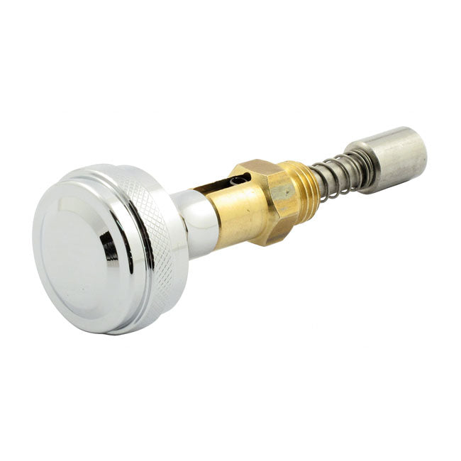 With chrome knob; On-off system; Used on Super E/G carbs where the OEM teardrop is replaced by a air horn or custom air cleaner that does not support the stock S&S E/G enrichment system