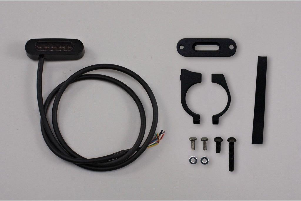 The Daytona 'Alpha' Micro Indicator Dashboard delivers compact, multi-function signaling in a sleek black finish. Its ABS body measures just 14x47x11.7mm, making it ideal for minimalist builds without sacrificing visibility. The precision CNC-machined aluminum clamp, anodised black, securely fits both 7/8" and 1" handlebar diameters. Five strategically positioned LEDs, three green, one red, and one blue, provide clear status indication across multiple circuits. Purpose-built for riders who demand function and form in equal measure.