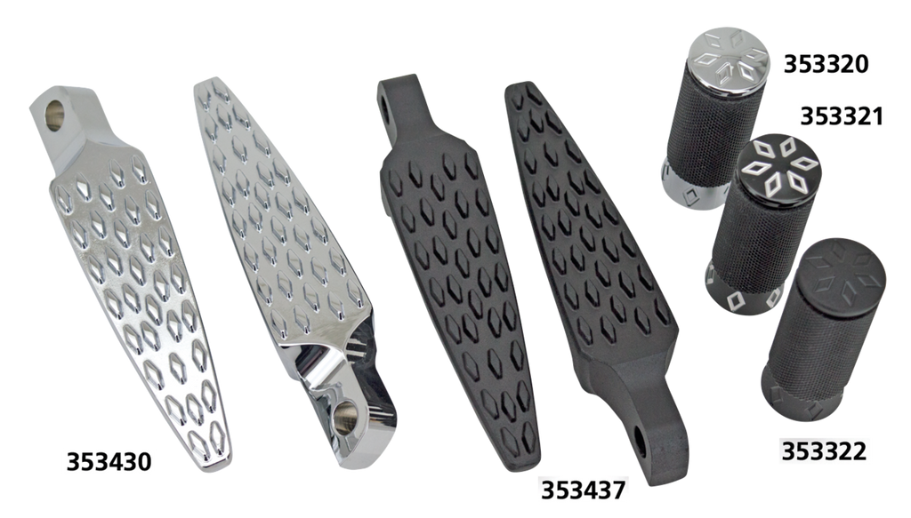 Billet no-slip design pegs. Foot pegs are sold in sets for left and right, brake and shifter pegs are sold each.
