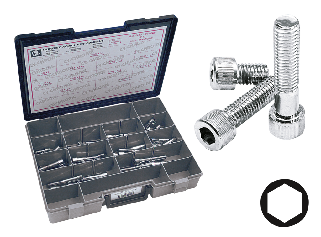 Assortment Tray Chrome Allen Head Screws 1/2 UNC