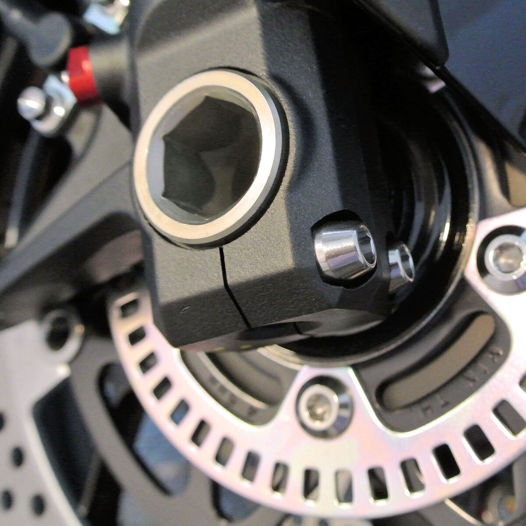 Axle Pinch Bolt Kit Stainless Steel, FrontCNC machined from A316 Stainless Steel Compliments Fork clamp bolts, Front axle nuts, and Disc rotor bolts Easy installation Excellent corrosion resistance Polished finish Aprilia RSV 1000 1998-2003 Aprilia RSV 1000 SP 1999 Aprilia TUONO 1000 R 2003-2005 Honda CBR 1000 RR-R ABS 2020-2023 Honda CRF 450 R 2017-2024 Honda CRF 450 RWE 2019-2022 Kawasaki KLZ 1000 ABS 2012-2015 Kawasaki ZX-12 R 2000-2006 Kawasaki ZX-6 R 600 2000-2002 Kawasaki ZX-6 R 636 2003-2006 Kawasaki ZX-9 R 2000-2003 Kawasaki ZZR 1400 ABS 2006-2020 Suzuki GSX 1300 R ABS 2021-2024 Suzuki GSX 1400 2001-2007 Suzuki GSX-S 1000 S ABS 2019-2025 Triumph SPEED TRIPLE 955 1999-2001 Yamaha MT-10 ABS 2016-2022 Yamaha MT-10 SP ABS 2017-2022 Yamaha YZF-R1 1000 2002-2008 Yamaha YZF-R1 1000 ABS 2015-2022 Yamaha YZF-R1 1000 LE 2006 Yamaha YZF-R1 1000 SP 2006 Yamaha YZF-R6 600 2003-2025 Yamaha YZF-R6 600 GP 2012 Yamaha YZF-R6 600 S 2003-2009 Yamaha YZF-R6 600 SP 2006