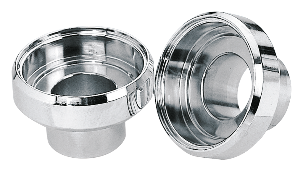 Chrome plated bearing cups for Harley. Fits FL and FLH models 1960-1984, FX models 1971-1985, FXWG models 1980-1986, Softail models 1984-1990, as well as many Custom style frames. Can also be used to convert 1949 thru 1959 Big Twin from ball bearings to tapered Timken bearings. Sold in sets of 2 (OEM 48311-60).