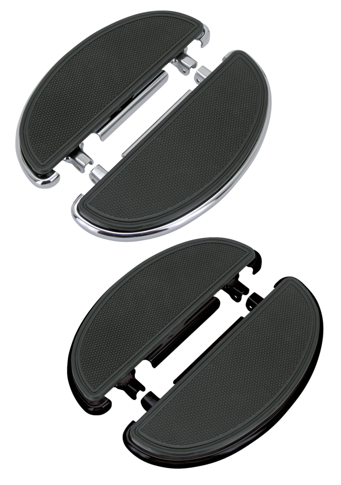 These classic style footboards combine the looks of the famous Liberators with today's comfort. They feature rubber inserts for vibration-isolation and a long, comfortable ride. Genuine Zodiac quality for a perfect fit and long lasting finish. Fits the stock mounts on all 1986 thru 2017 FLST Softail models and are supplied in sets of left and right.