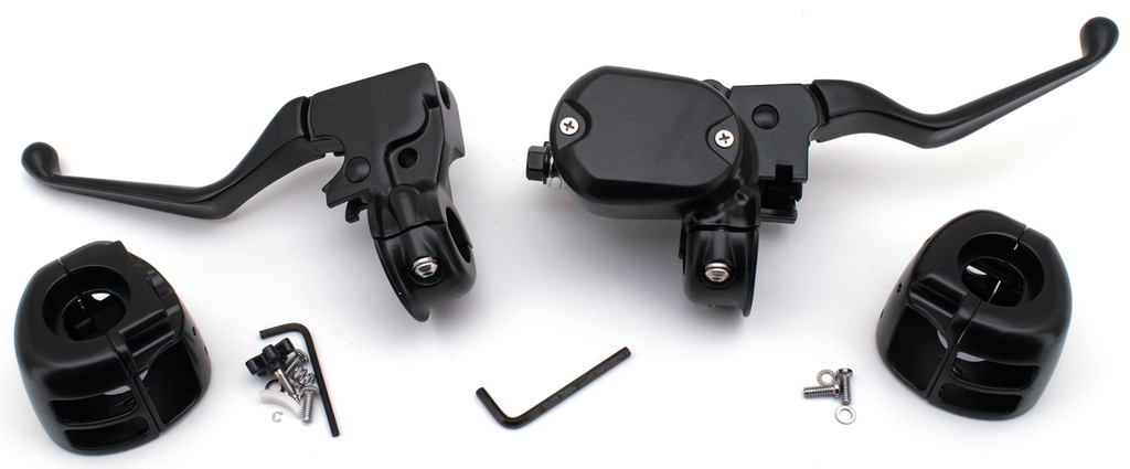 Complete handlebar control kit for 2007 thru 2013 Sportster models. A perfect reproduction of the Original Equipment parts, available in your choice of chrome or black. Comes complete with switch housings that accept OEM and OEM style aftermarket switches. All hardware needed is included. Available with 1/2" bore master cylinder for Single disc models and 9/16" for Dual disc models.