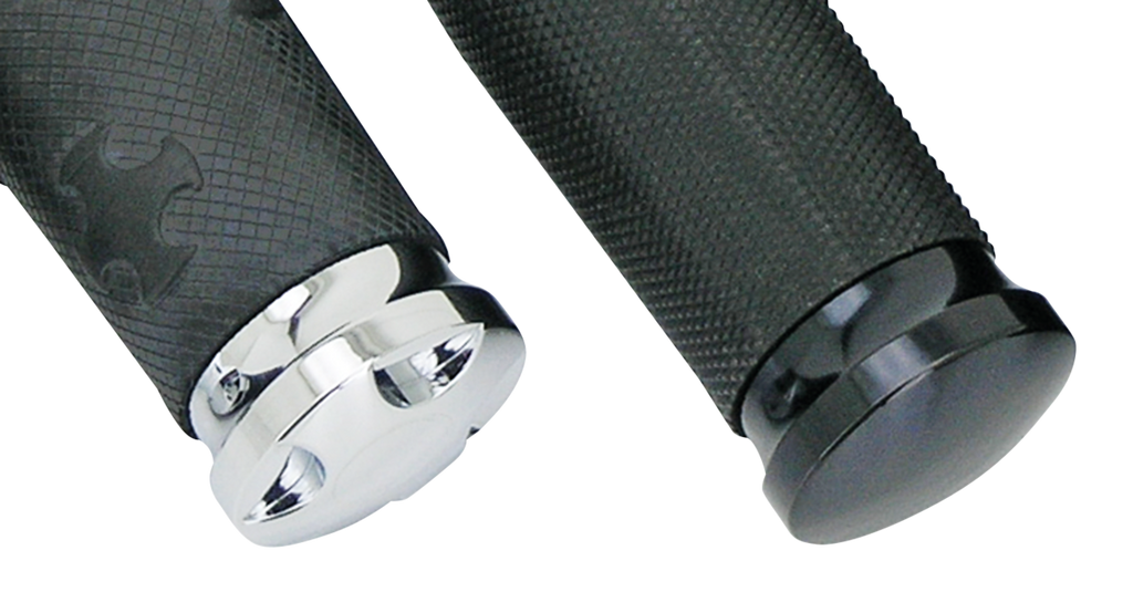 Tornado II male mount pegs are machined from billet aluminum with a chrome or black anodized finish. The end caps have the Four Cross or smooth design and to provide extra comfort and a non-slip grip to your boots, they feature rubber wrapping with the Four Cross version also having protruding crosses. Pegs have a 6" (15.3 cm) over all length and are 1 3/8" (3.5 cm) in diameter. Pegs feature male mounts suitable for most rider and passenger applications. Matching handlebar grips can be found in Chapter 14.