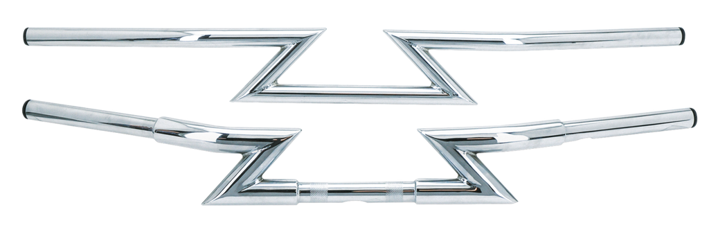 There is no handlebar with the looks of a Zodiac Z-bar. Zodiac's Z-bars are available in normal 1" (2.54 cm) diameter as well as in the "Fat Bubba" 1 1/4" (3 cm) diameter. The Fat Bubba version has 1" diameter ends to allow the installation of regular handlebar controls and is dimpled to route the switch wire looms. As with all our Fat Bubba handlebars, the fat section has a flatted spot for your brake master cylinder. The 1" diameter Z-bar comes undimpled.
