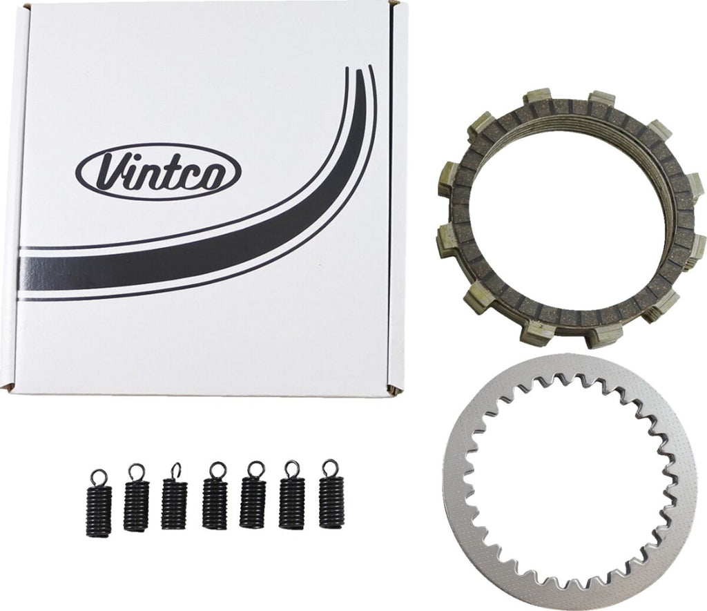 Clutch Plate KitVintCo clutch kits will save you time and money as they come complete with steel and friction plates, along with the springs to complete the job with ease Made with modern materials and manufacturing techniques to ensure an as good or better than OEM fitment and performance Cork friction plates are infused with aluminum particles designed to ensure smooth power delivery and fade free performance Clutch plates made of steel Steel plates won't expand and do not fade like aluminum plates Clutch springs are heat treated for maximum life Maico sintered bronze plates does not include steel plates (all Maicos). Suzuki PE 175 1978-1984 Suzuki RM 100 1977-1978 Suzuki RM 125 1976-1978 Suzuki RS 175 1980-1982