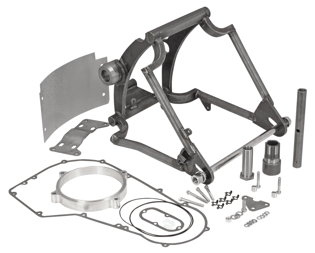 The Super-Ass swingarm kit is for those that want to convert their Softail or Wide-Tail Softail to accept Avon's 230x15 Super Wide rear tire. This tire measures 250mm wide if fitted on an 8" wide rim. Kit bolts straight into both the stock Softail frame as well as the Zodiac WideTail frame. You can still use the final belt drive when used in a WideTail frame, a stock Softail must be converted to final chain drive or the late 20mm wide belt. When you use this narrow belt or a chain in a Zodiac WideTail frame you can easily go up to a 250 series tire.