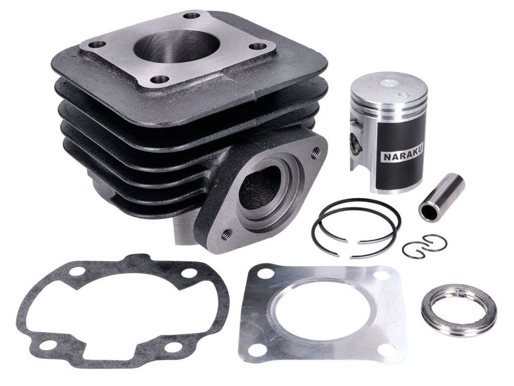 Cylinder Kit V.2 50cc for SYM Mask, Jet, Red Devil, Shark horizontal T5CThe NARAKU 50cc cast iron cylinder kit is an affordable and robust alternative for those looking for a replacement for a damaged cylinder or piston The power output is somewhat higher than the original barrel Very good value for money for a good quality replacement cylinder kit Supplied with gasket set and the original head is retained Spare parts for this kit can be selected from the collection When installing the piston rings, please make sure that the "T" or "J" mark indicating the ring stop of the piston ring is pointing upwards. Otherwise the piston cannot be fitted correctly. SYM JET 50 1996-2002 SYM JET EVO 50 2014-2016 SYM MASK 50 2000-2007 SYM RED DEVIL 50 1999-2009