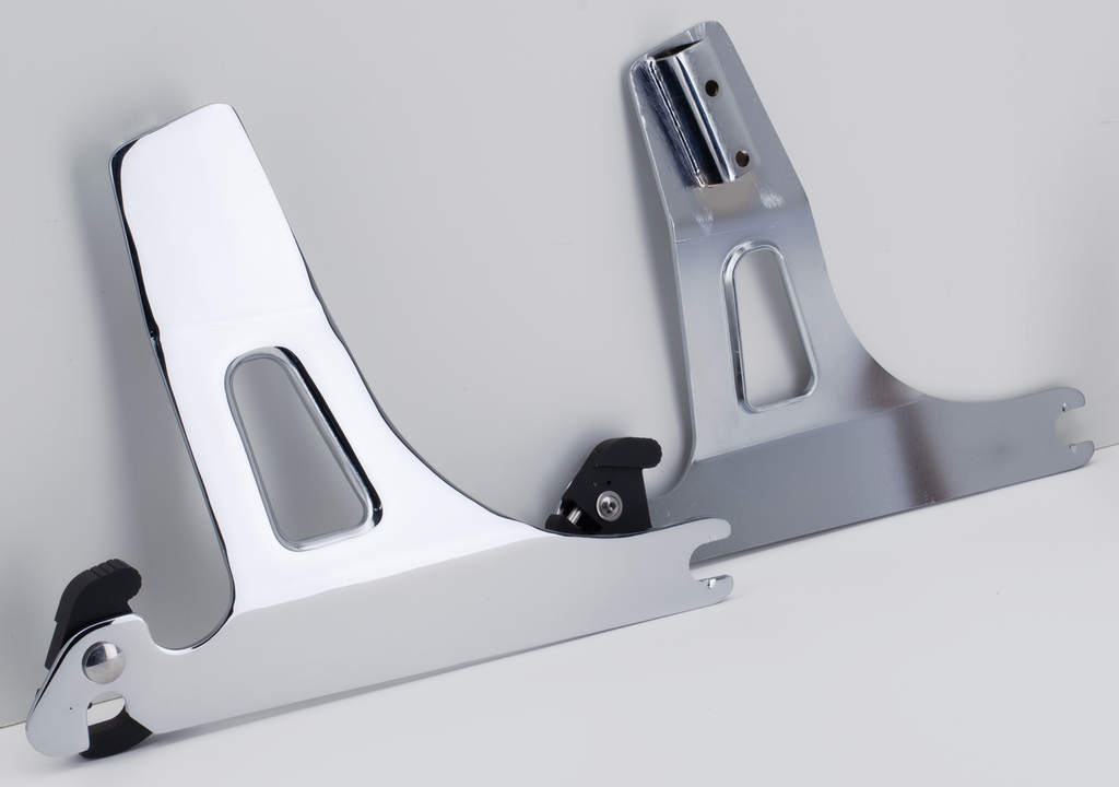 Sometimes you want a sissy bar, sometimes you don't. A detachable sissy bar is exactly what you need. All you have to do is install a docking kit, in fact small buttons that are hardly noticeable. When you want your sissy bar on the bike you just slide and click it in position. And when you want it off again, you just click and slide it off in just a few seconds. Please check the table below what parts you have to order as you certainly will need a docking kit, a set of detachable side plates and a Shorty upright. Some models also require a turn signal relocation kit. All parts are offered separately since components fit a variety of models. For unlisted models please check out our other detachable or rigid mount sissy bars.
