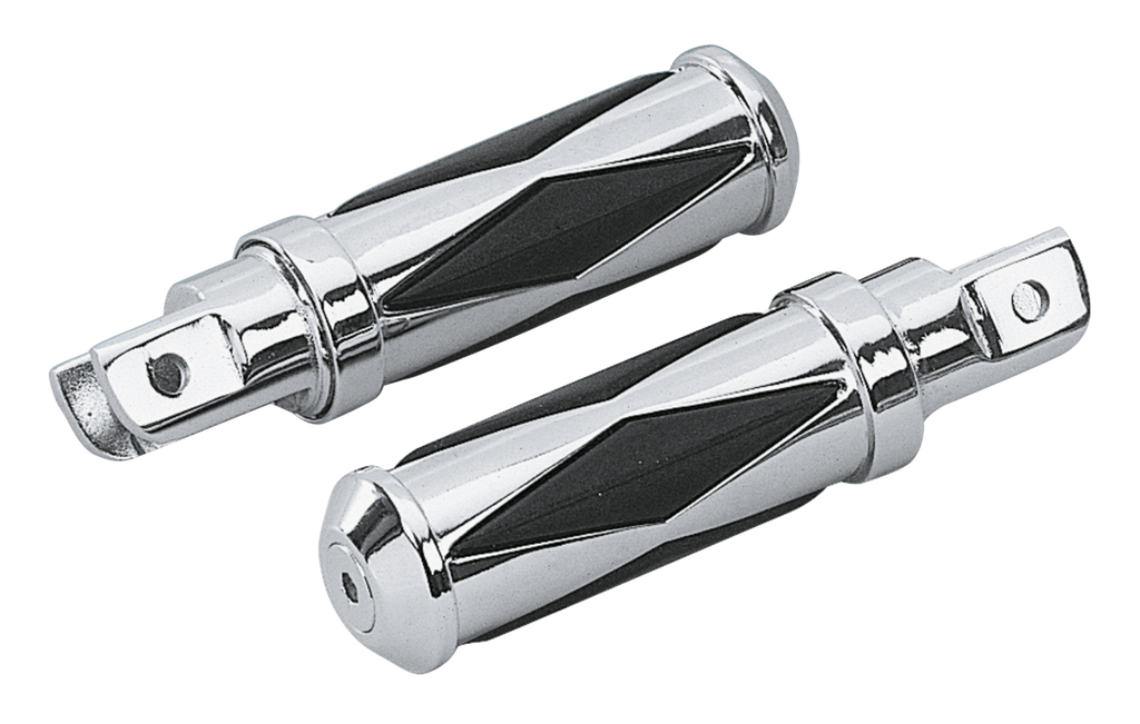 Diamond foot pegs, also known as footrests, feature a rubber inlaid insert with a chrome body. These Genuine Zodiac pegs are stronger than most the same looking pegs on the market but still cannot be used as a kickstart pedal.